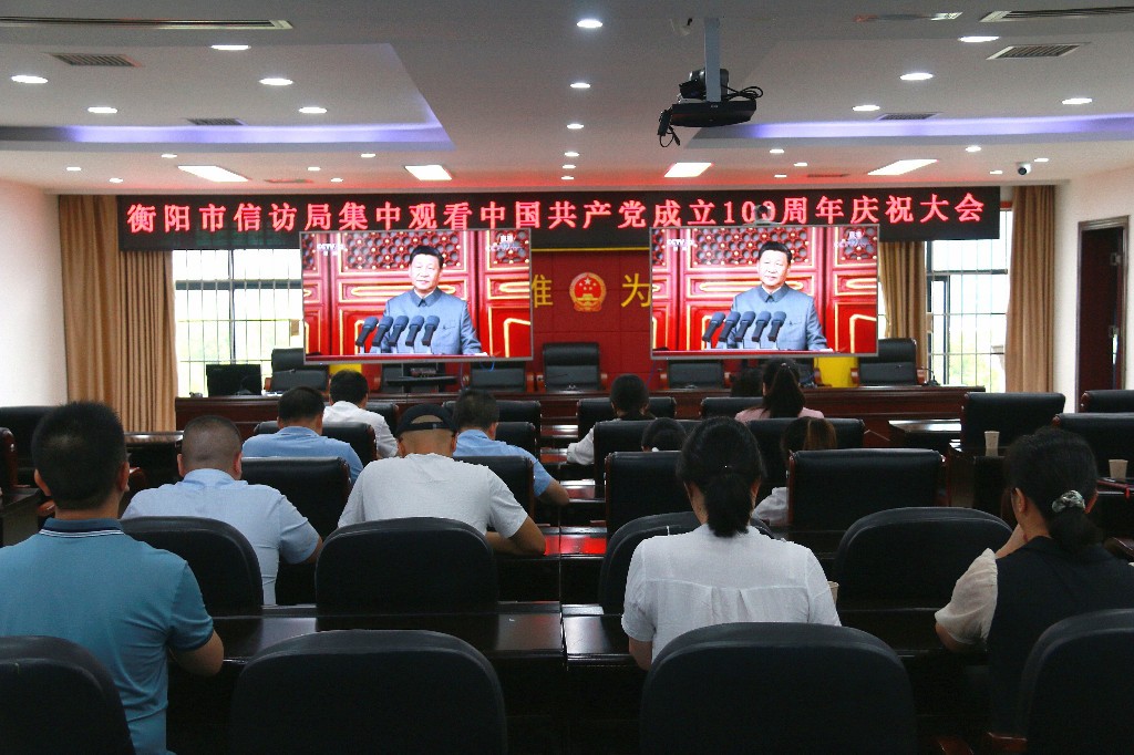建党百年华诞,神州举世欢腾。7月1日上午,中国共产党成立100周年庆祝大会在北京天安门广场隆重举行,习近平总书记发表重要讲话。市信访局组织全体在衡干部职工集中观看大会直播实况,驻长、驻京工作人员在本岗位就地观看,共庆伟大的党百岁生日。