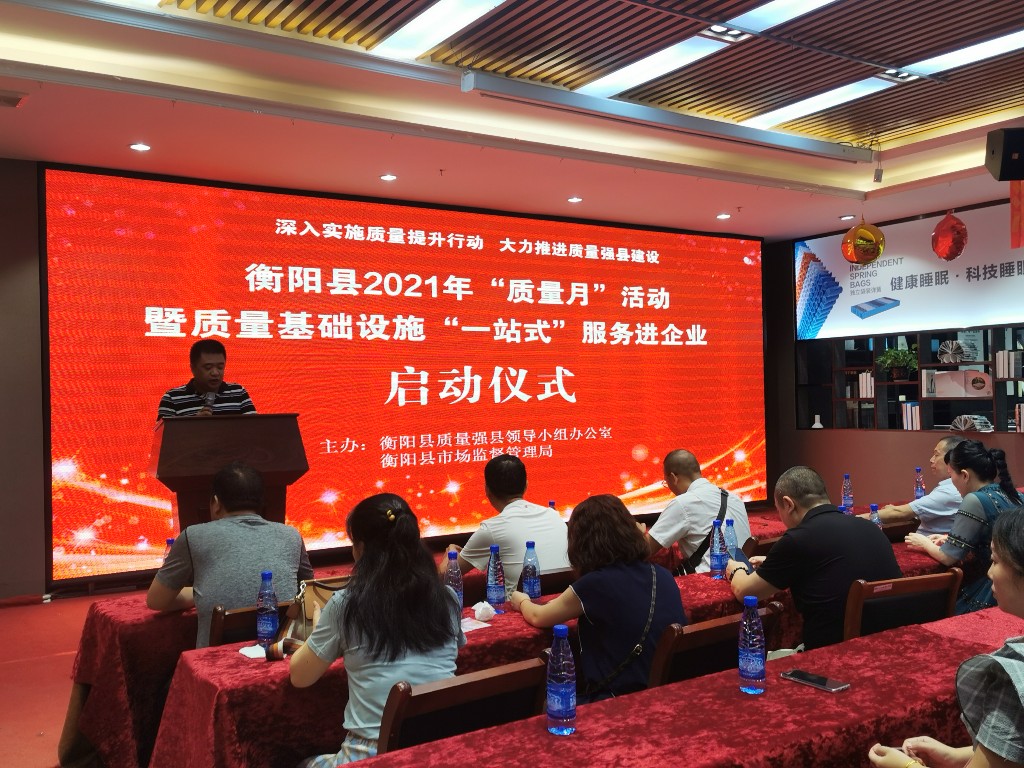 为深入实施质量提升行动,大力推进质量强县建设,9月24日,由衡阳县质量强县领导小组办公室、县市场监督管理局共同举办的2021年“质量月”暨质量基础设施“一站式”服务进企业活动启动仪式在湖南喜传天下家居有限公司举行,县质量强县领导小组相关成员单位负责人和县市场监管局质监股、标准化股等股室负责人及部分企业代表近50人参加活动。