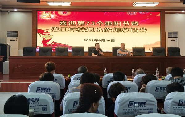 9月29日上午,西渡镇滨江学校重阳节活动在宽敞明亮的博知楼会议室隆重举行。多媒体显示屏上滚动着醒目的祝福语,一排排座位前贴心地摆放了香甜的水果与糕点,得到盛情邀请的退休老教师们重回到校园,他们激动地握手相拥,相互询问晚年生活状况,温馨与感动在眉宇间飞扬,拳拳爱心与浓浓深情在会场上流淌。大家一起参观了校园,观看了大课间活动。优美的校园环境,丰富的校园活动让老教师们赞不绝口,不禁感慨:学校发展突飞猛进,精神面貌焕然一新,文化氛围溢满校园。(王慧)