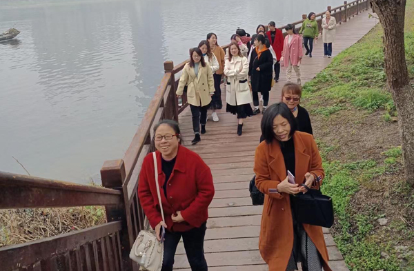 3月4日,滨江学校女教师换上美丽的春装,带上美好的心情,沐浴着清晨的阳光,在衡阳县委党校前统一乘车出发,前往衡阳市东洲岛、双水湾。在东洲岛参观船山书院,大家深深感受到了船山文化的深刻内涵;下午,她们前往双水湾,了解“衡州窑”、“平沙落雁”,坐船游湖,感受大雁文化的无穷魅力。