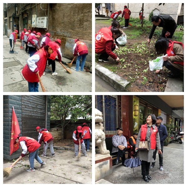 活动中,志愿者们拿着扫帚、抹布、簸箕、铁锹、火钳等卫生工具,发扬雷锋不怕苦、不怕脏、不怕累的精神,分片、分段、地毯式对街道旁、院落内的杂草、枯叶、烟头、碎砖块和墙上的“牛皮癣”等进行了细致清理,并劝导居民将放置在院内、过道上的杂物进行及时清理,确保卫生不留死角死面。志愿者们在认真开展卫生清扫工作的同时,积极与社区居民、沿街商贩宣传环保知识,致力于让居民都参与到“创文巩卫”活动中来,为“创文巩卫”工作贡献自己的一份力量。经过几个钟头的打扫,院落面貌焕然一新,志愿者们脸上露出了开心的笑容。