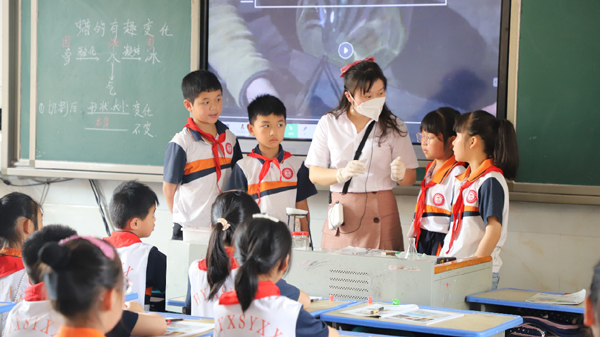 “校长您好!我是湖南省教育报刊集团小记者简妮,我校今天对外开放了哪些活动?您觉得学校里最受欢迎的活动是什么?……”“刘主任,您好!我是湖南省教育报刊集团小记者邹政希,您觉得我们学校的开放日活动开展得怎么样?有哪些亮点及需要改进的地方?……”5月19日,衡阳县实验学校小学部教育教学开放日当天,学校小记者简妮、邹政希正在采访县教育局教研室主任刘悬九及学校党支部书记、校长陈小兵,两位领导耐心地为小记者答疑解惑。