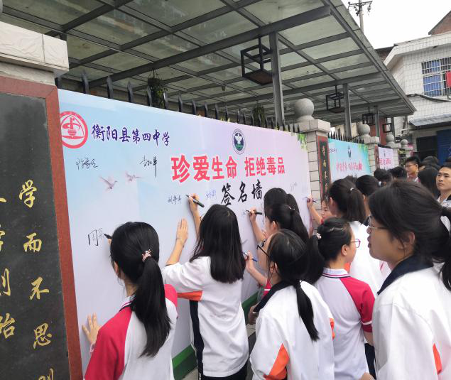 县第四中学围绕“参与禁毒活动,构建和谐校园”的宣传主题,开展禁毒黑板报、禁毒集中签名、禁毒主题班会等一系列宣传活动,在全校掀起了“禁毒、防毒”的新高潮,大大提升了全校师生的禁毒意识。