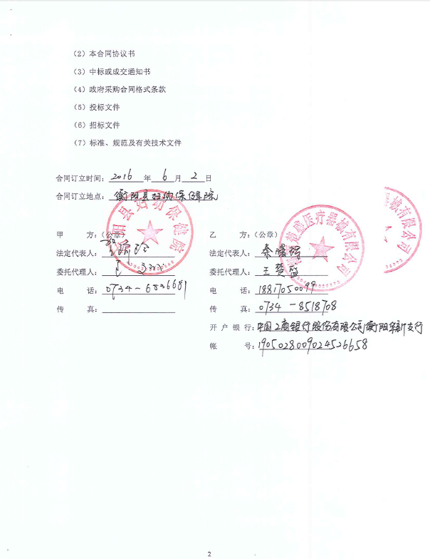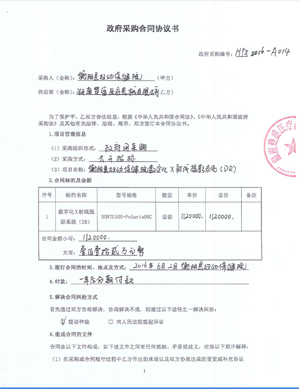 衡阳县妇幼保健院的衡阳县妇幼保健院数字化X射线摄影系统(DR)政府采购项目合同