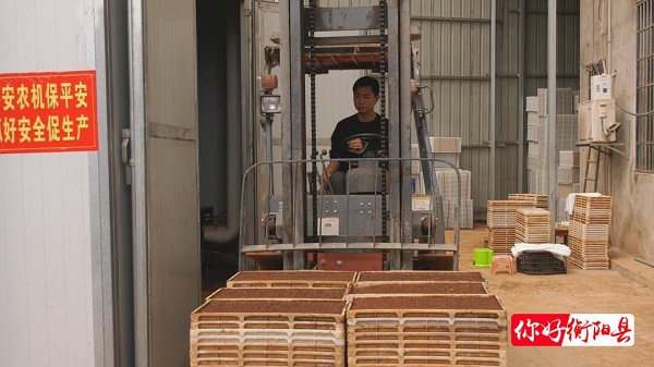 在岘山镇万山村,种粮大户肖露正驾驶叉车将处理好的秧盘送到密室进行催芽。肖露是一名“90”后,2021年回乡创业,利用年轻人的思维引入和学习先进机械作业,大力推广农业全程机械化。目前,他的700亩早稻育秧已基本完成,预计4月上旬就可以进行机插。