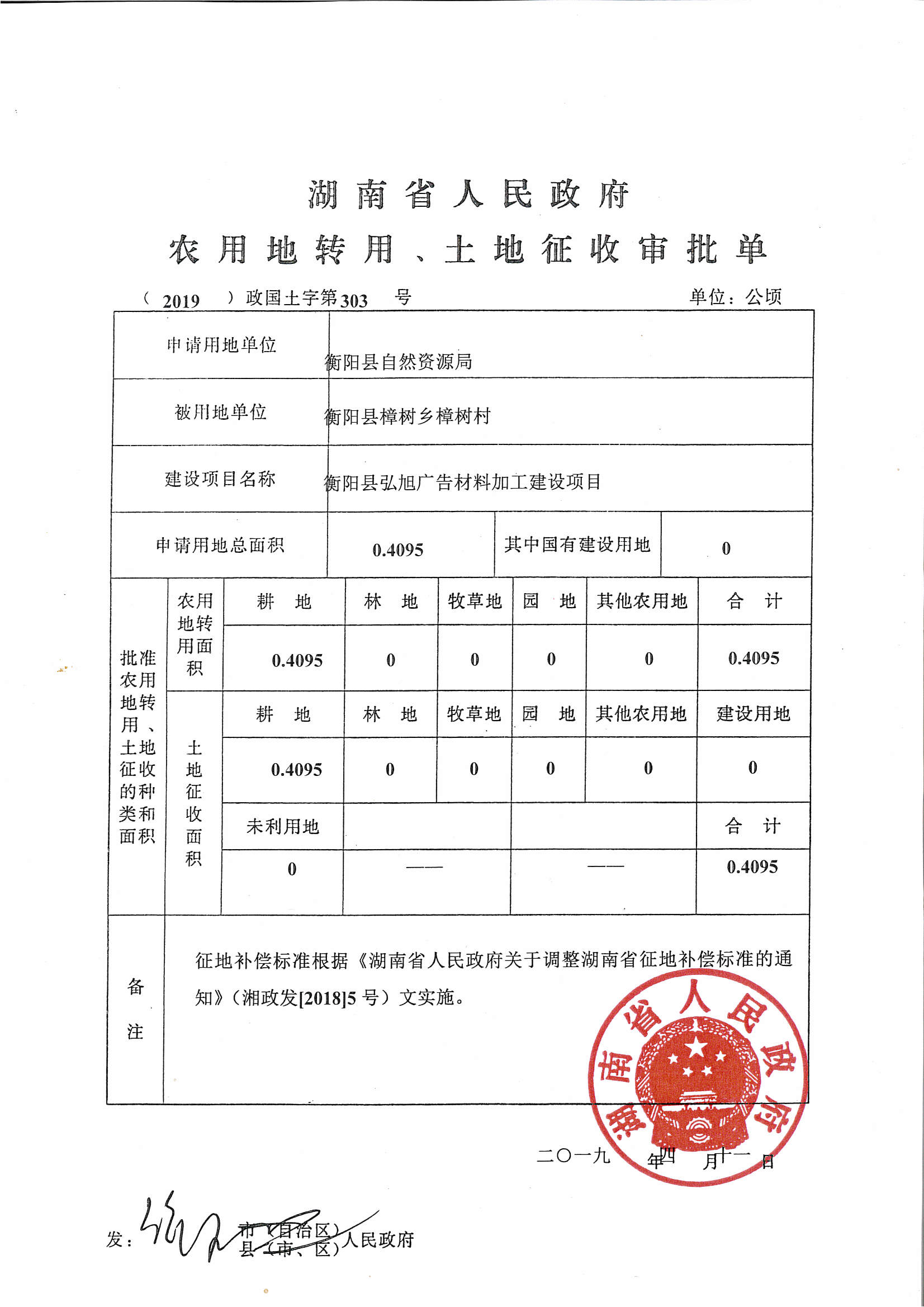 衡阳县弘旭广告材料加工建设项目