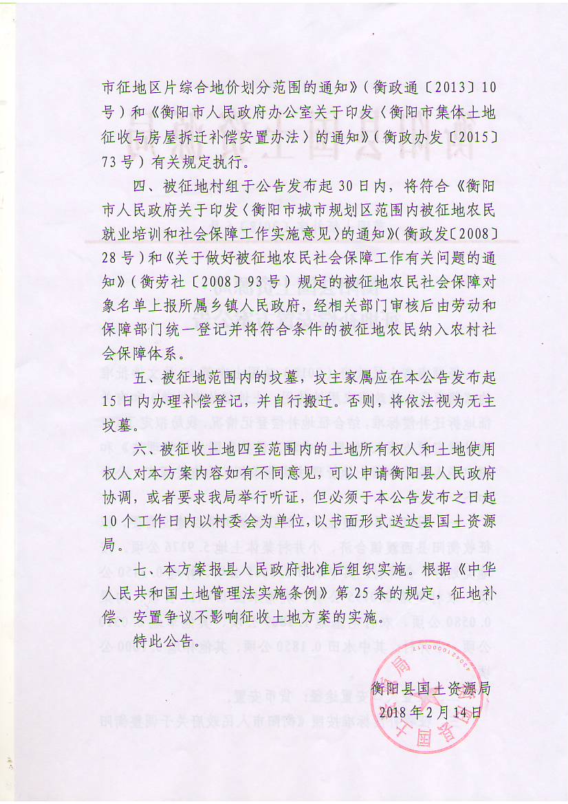征地补偿安置方案公告蒸国土征补字【2018】6号