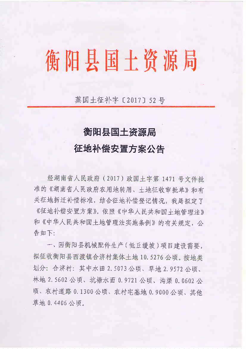 征地补偿安置方案公告蒸国土征补字【2017】52号