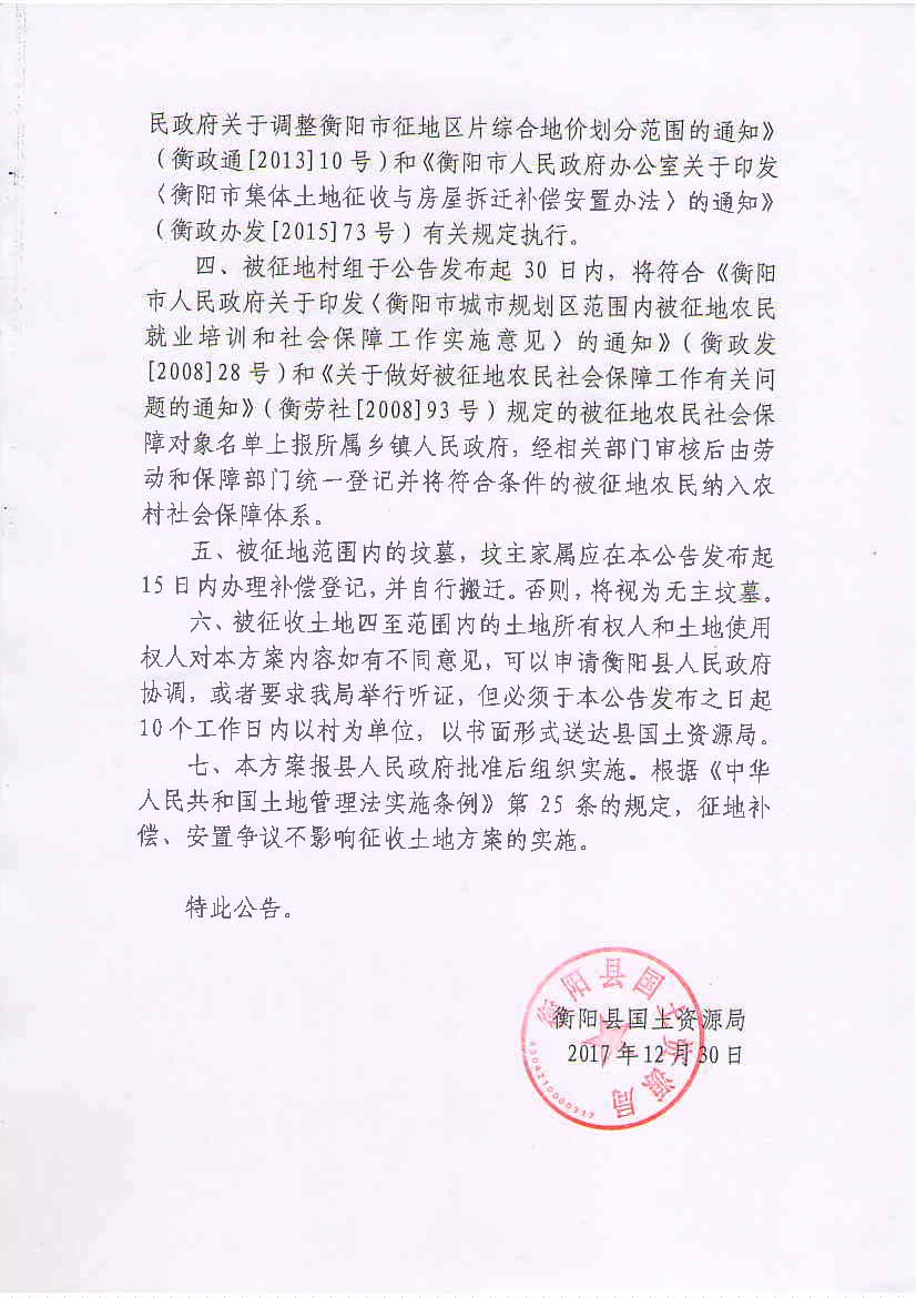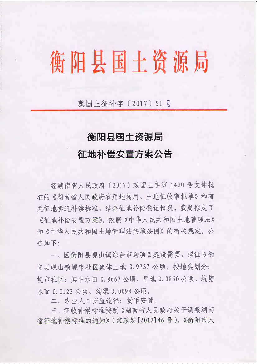 征地补偿安置方案公告蒸国土征补字【2017】51号