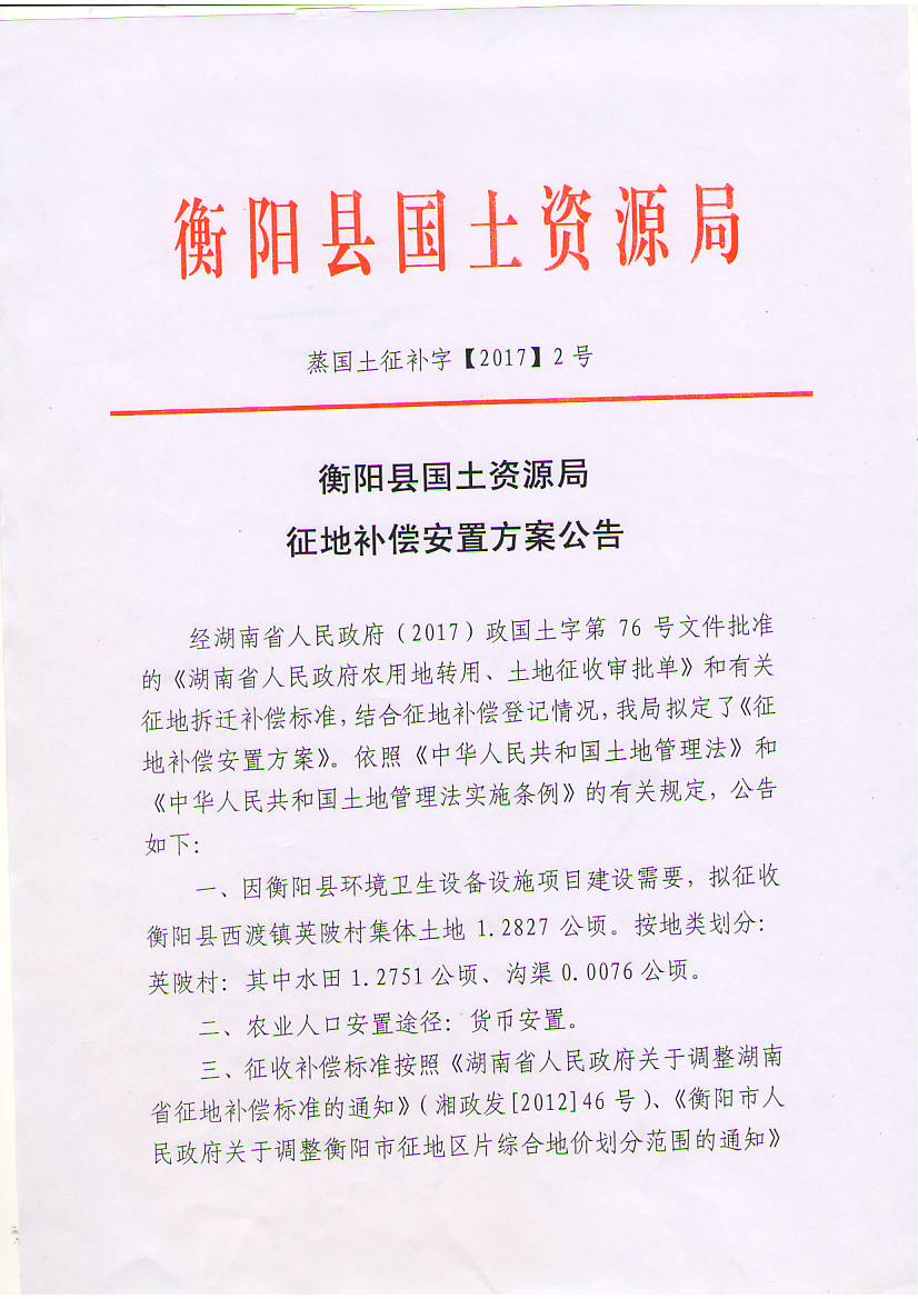 蒸国土征补字【2017】2号征地补偿安置方案公告