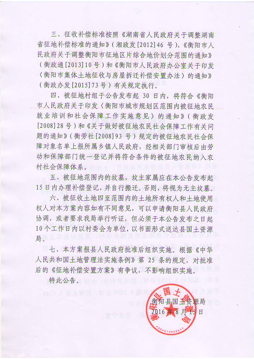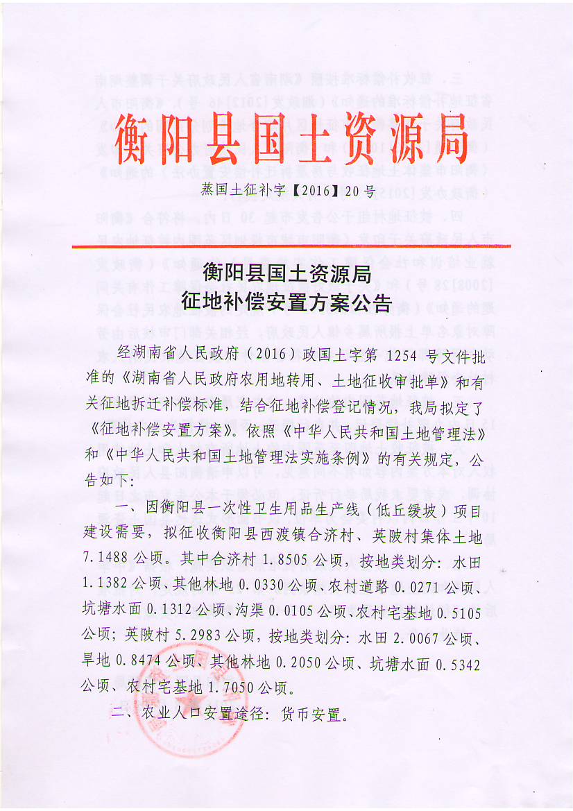 蒸国土征补字【2016】20号征地补偿安置方案公告