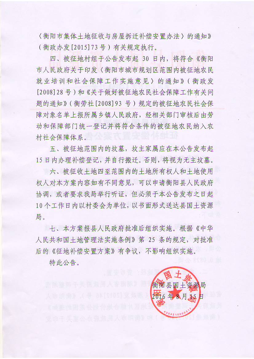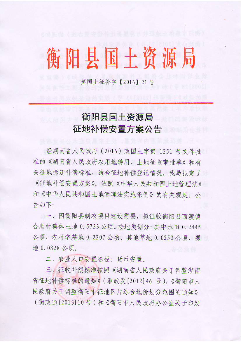 蒸国土征补字【2016】21号征地补偿安置方案公告