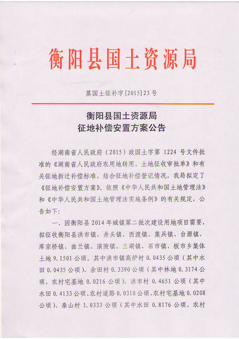 蒸国土征补字【2015)23号征地补偿安置方案公告