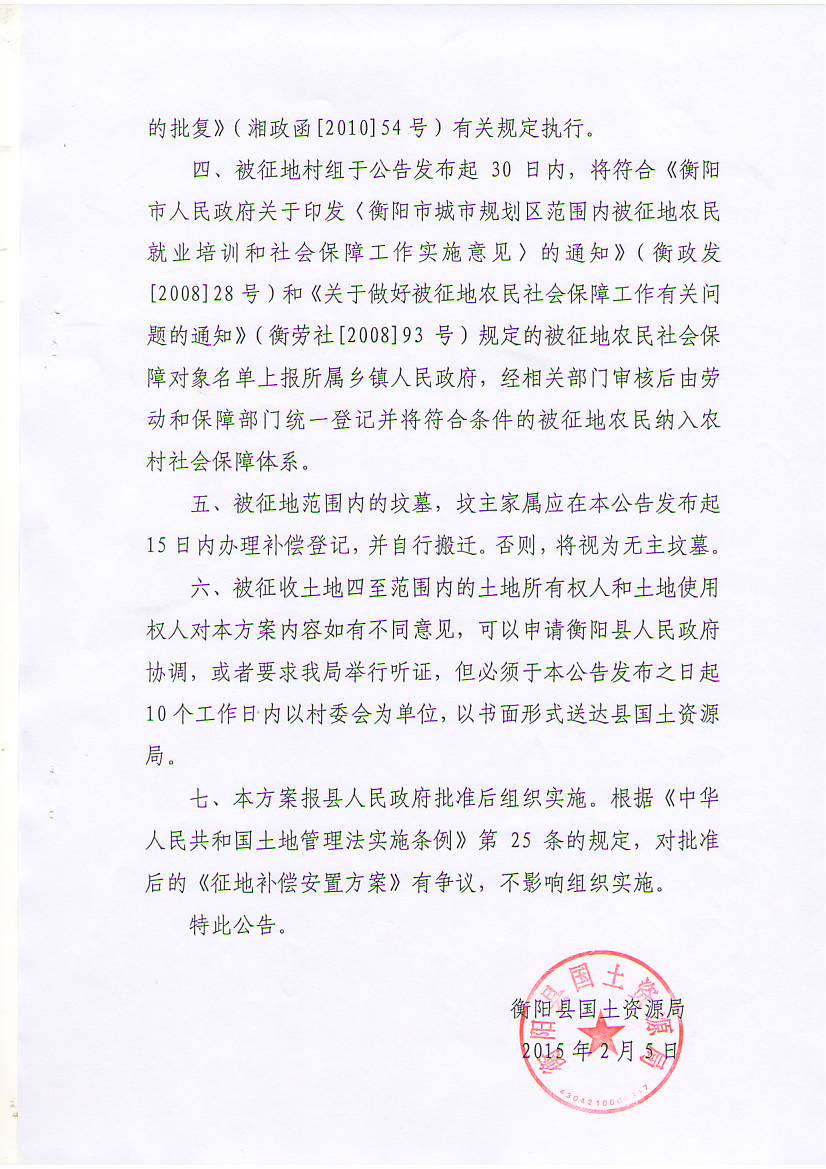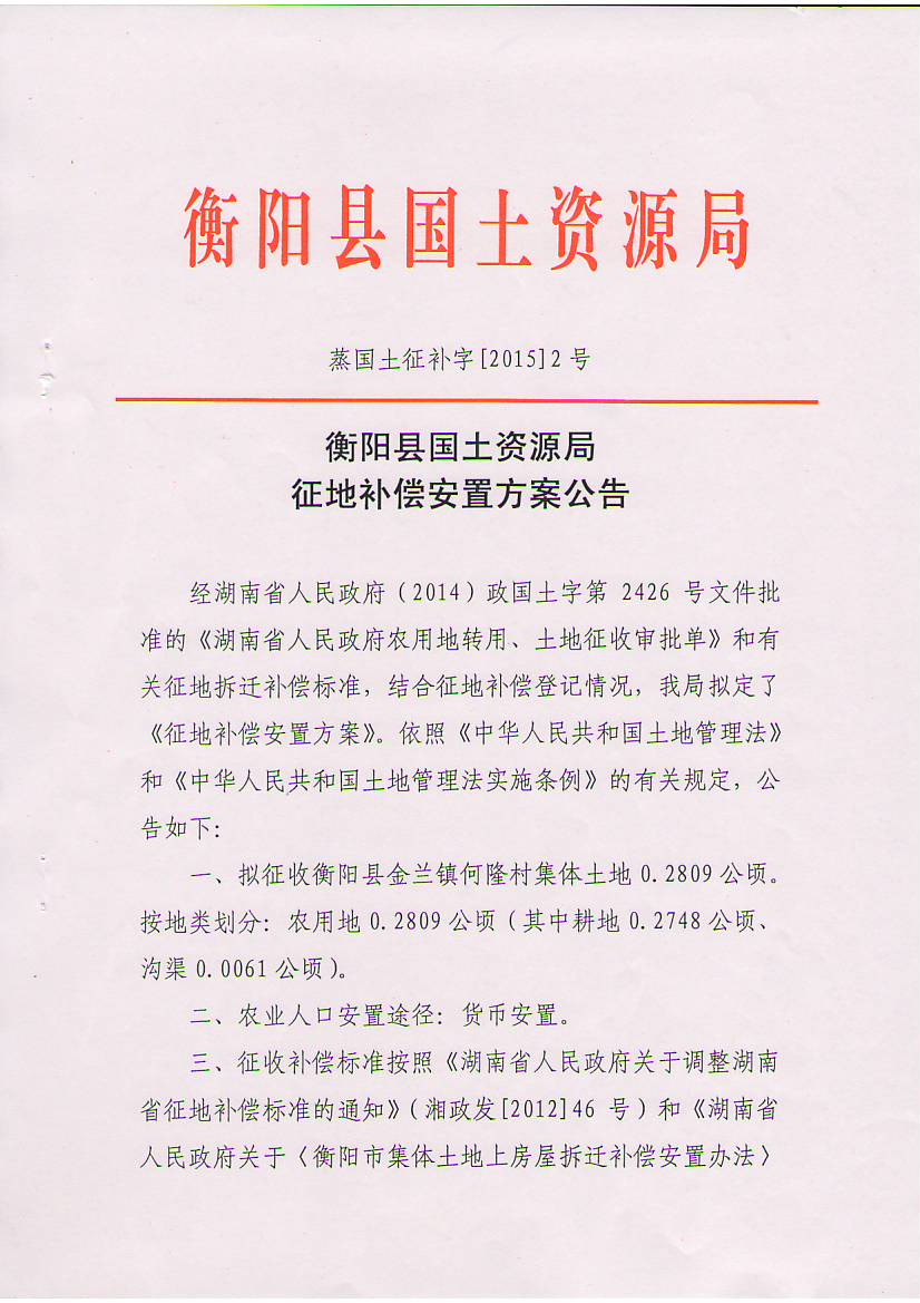 蒸国土征补字【2015】2号征地补偿安置方案公告