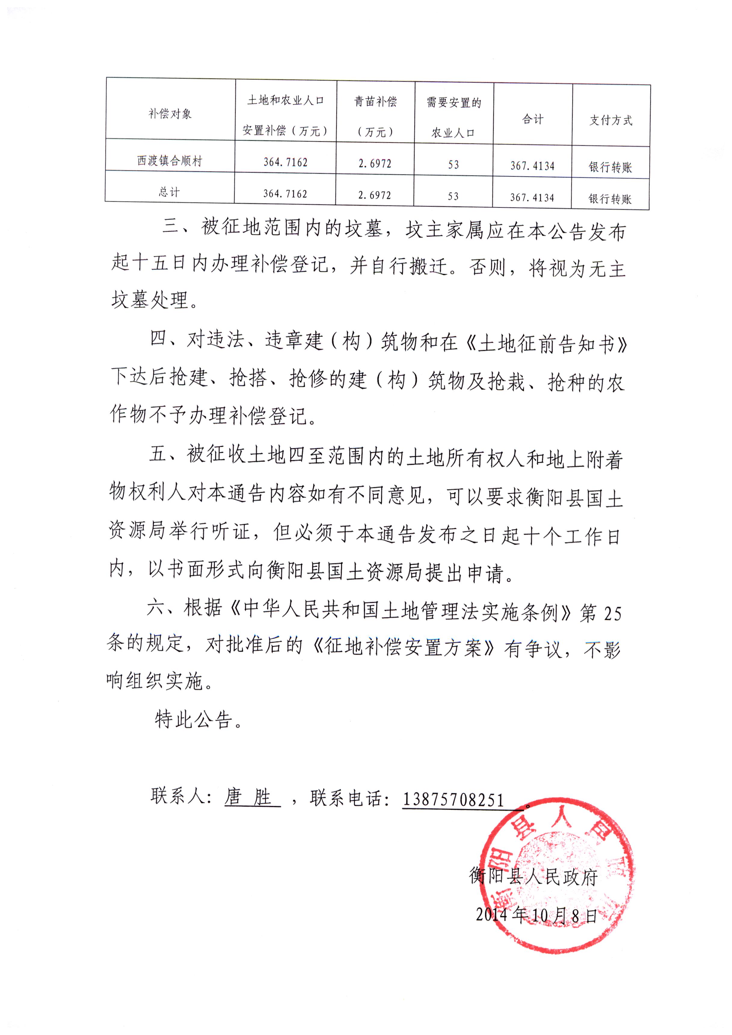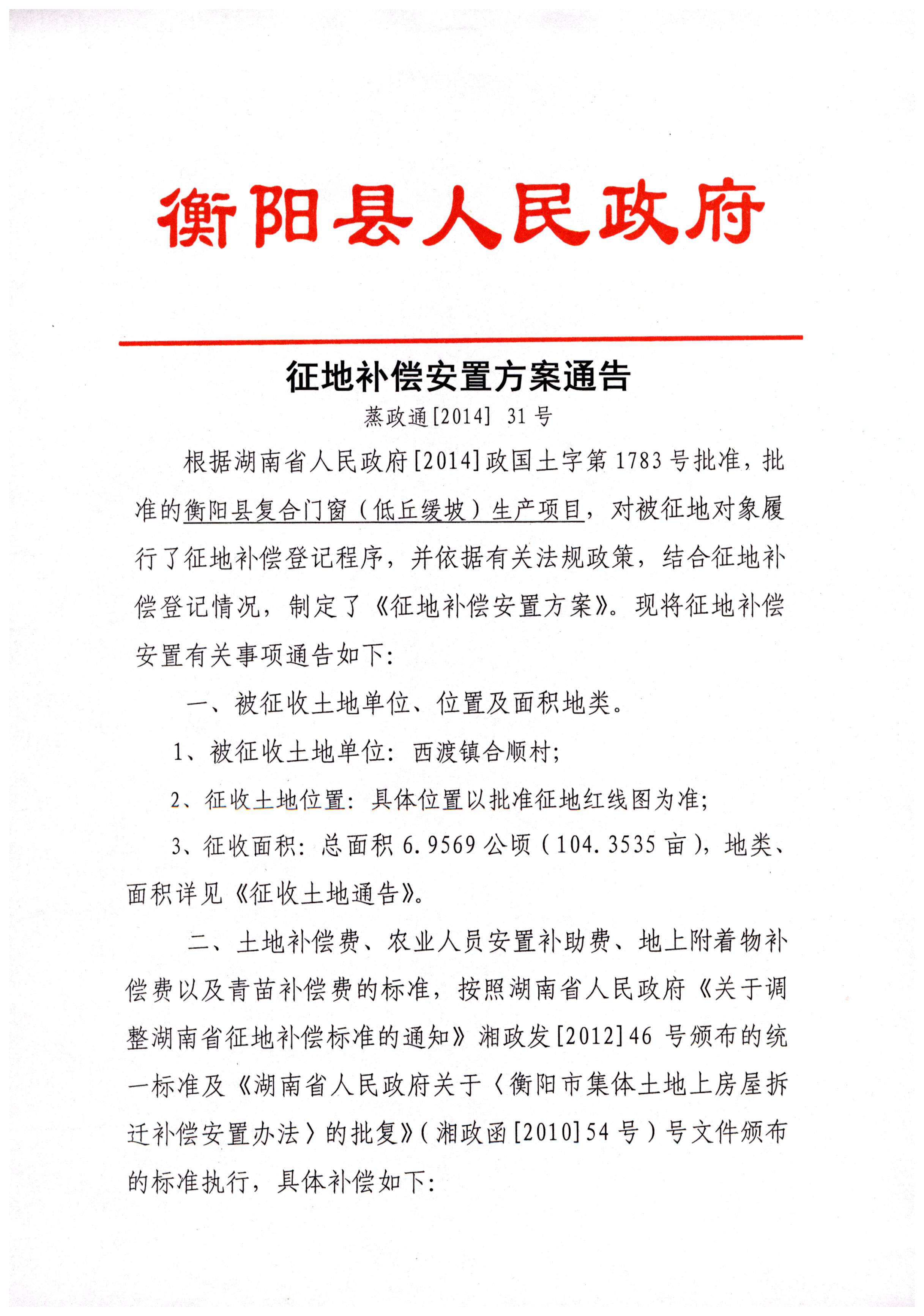 蒸政通【2014】31号征地补偿安置方案通告