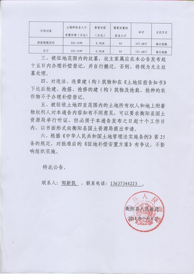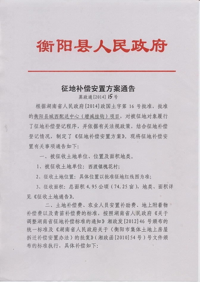 蒸政通【2014】15号征地补偿安置方案通告
