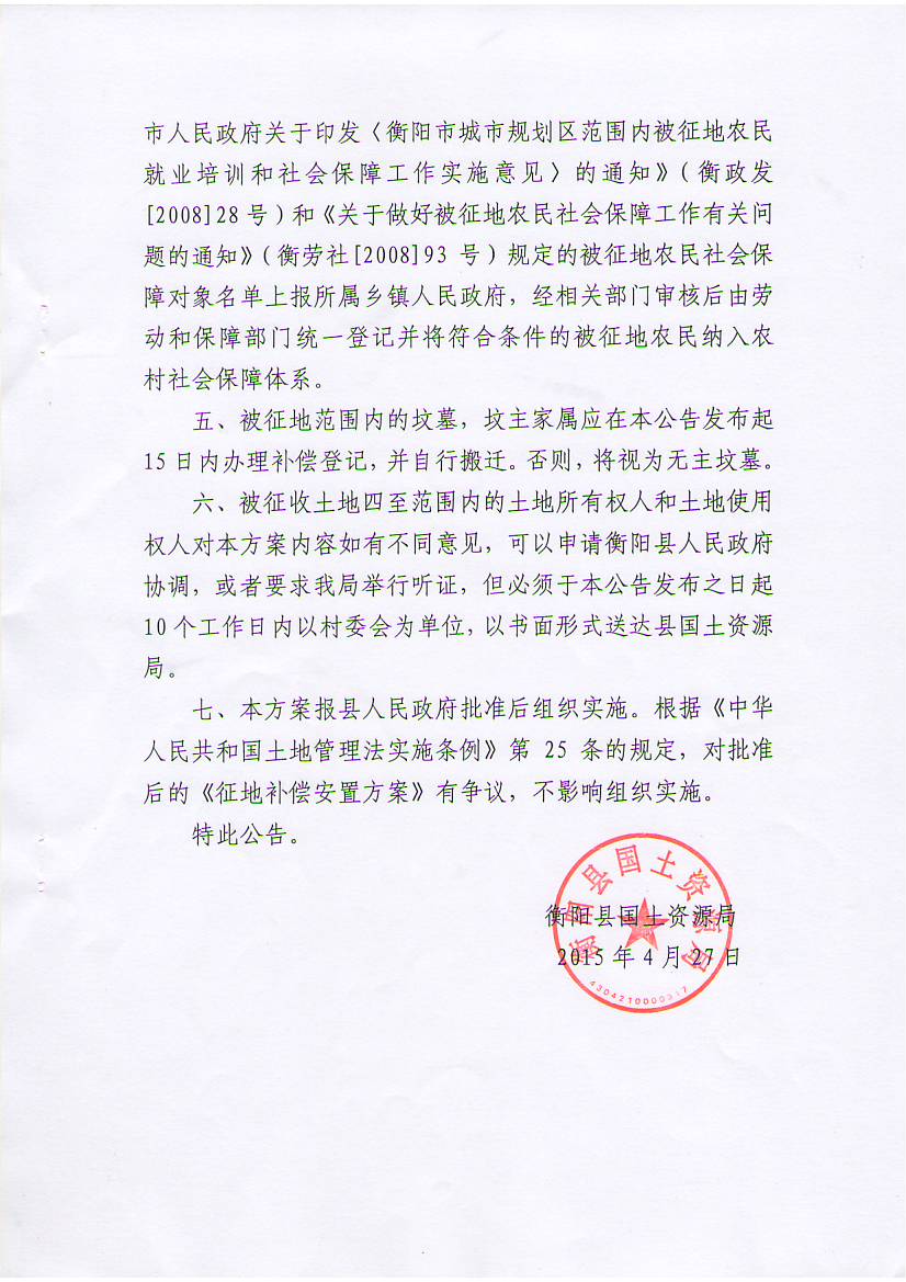 蒸国土征补字【2015】7号征地补偿安置方案公告