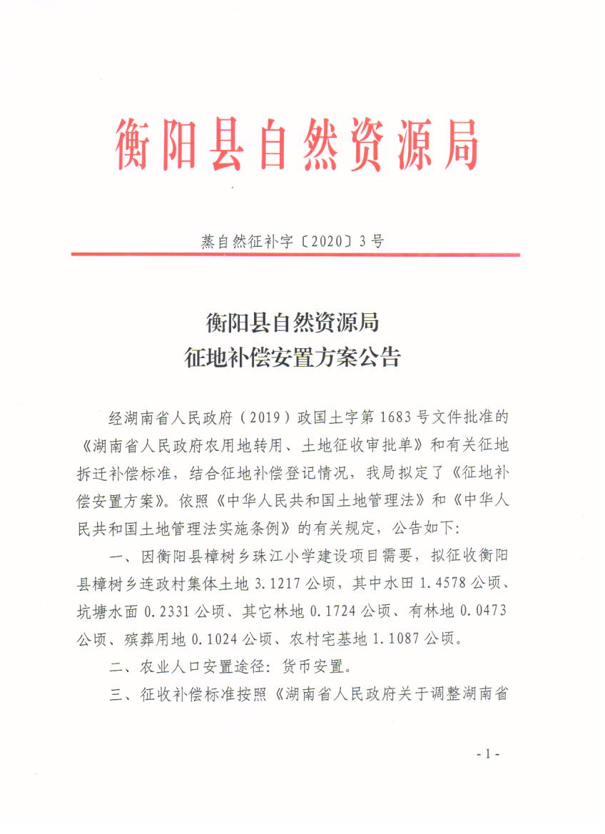 蒸自然征补字[2020]3号 征地补偿安置方案公告