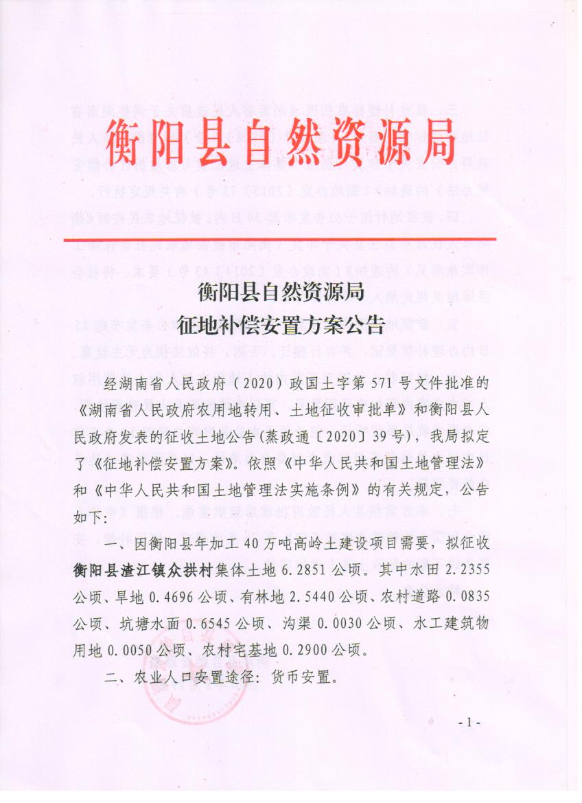 蒸自然征补字【2020】39号征地补偿安置方案公告