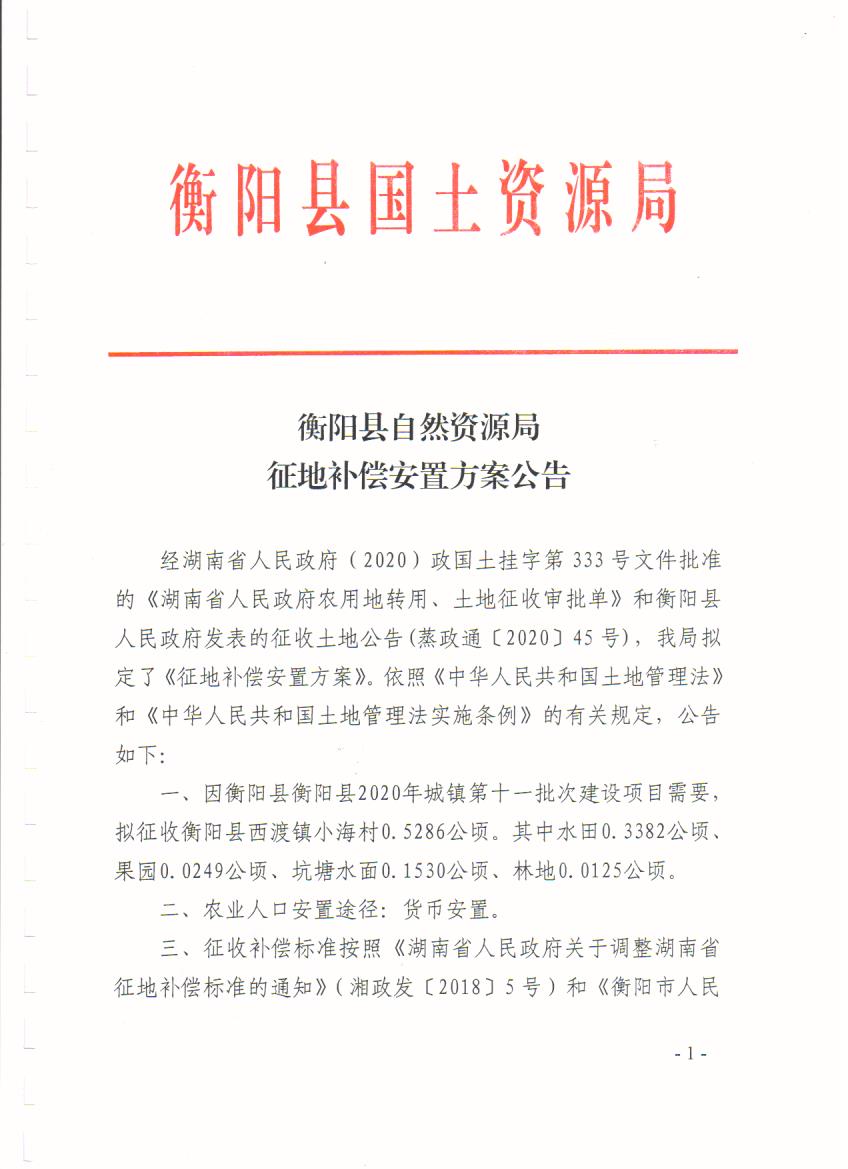 蒸自然征补字【2020】45号征地补偿安置方案公告