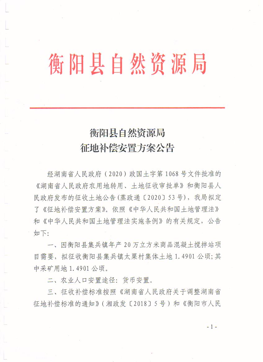 蒸自然征补字【2020】53号征地补偿安置方案公告