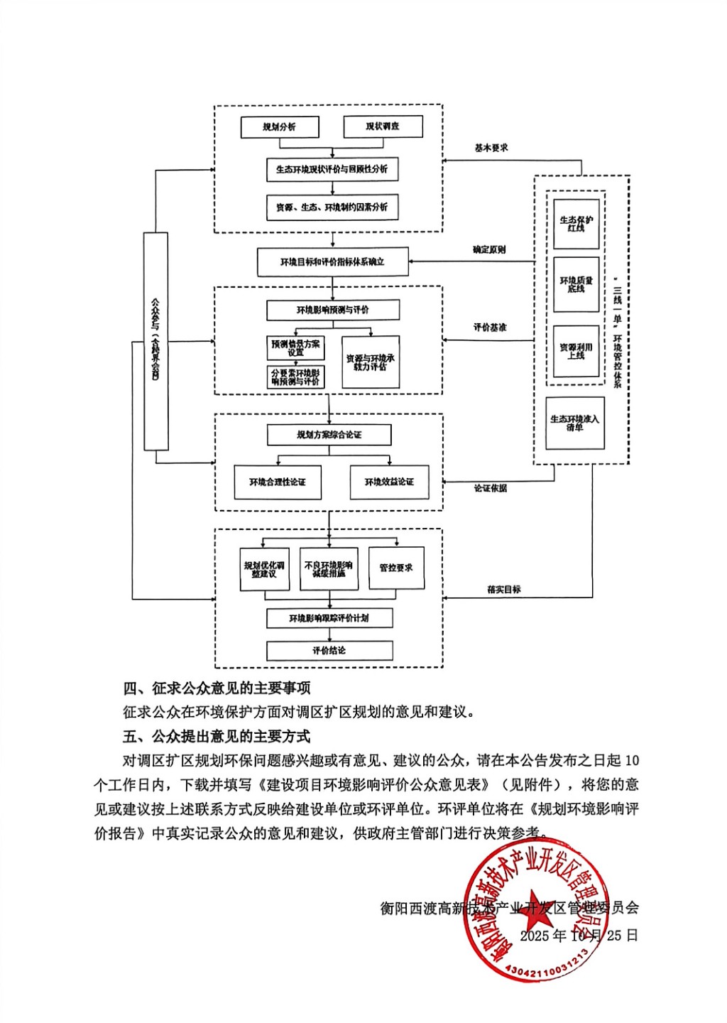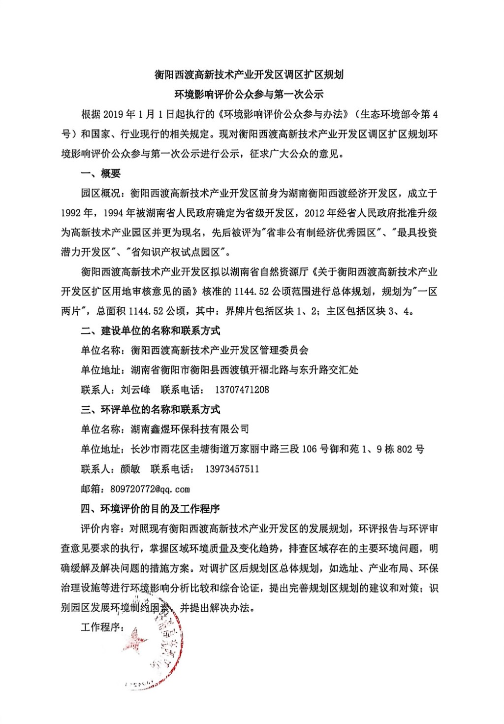衡阳西渡高新技术产业开发区调区扩区规划环境影响评价公众参与第一次公示
